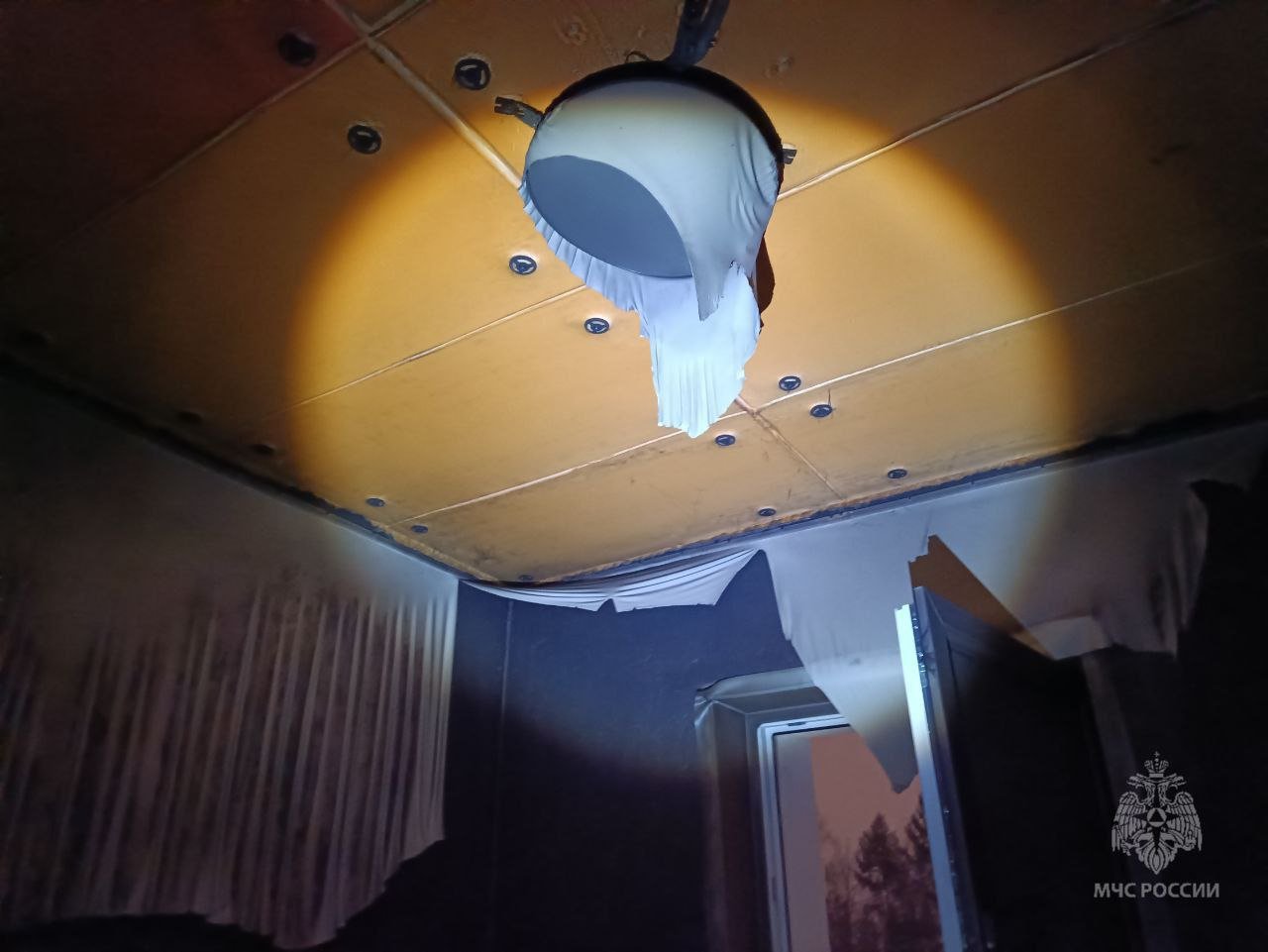 По предварительной причине, пожар возник из-за короткого замыкания в светодиодном светильнике на потолке. Огонь повредил потолок, внутреннюю отделку комнаты, имущество, деревянные перекрытия потолка.