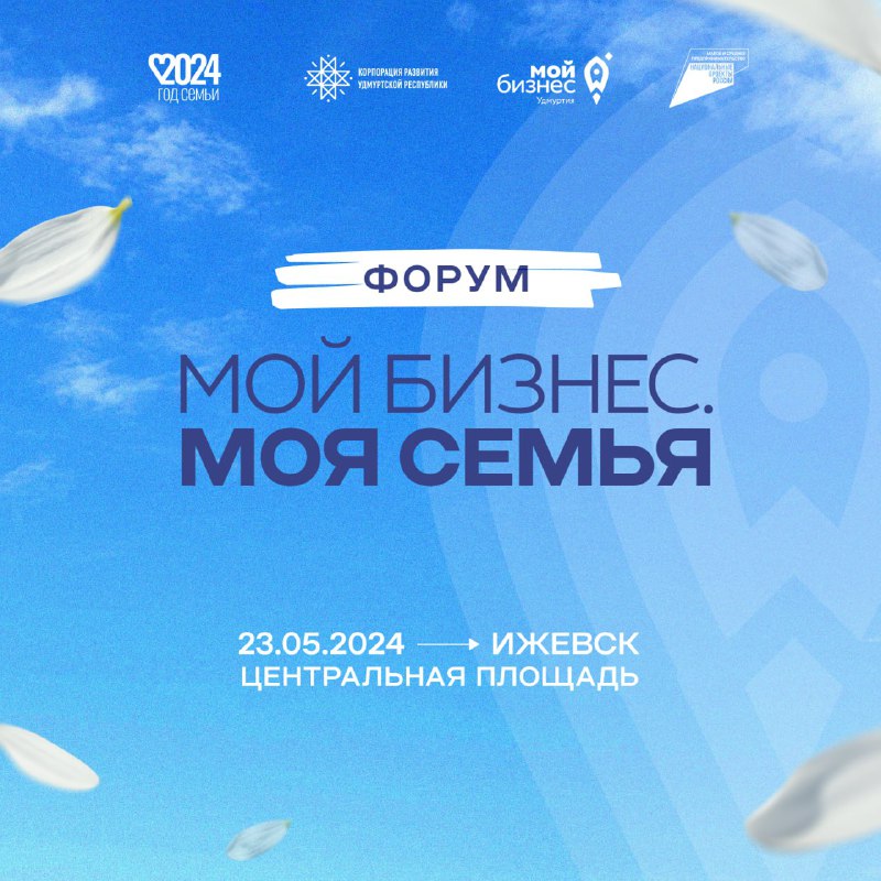 23 мая 2024 года на Центральной площади города Ижевска состоится форум «Мой бизнес. Моя семья». Форум посвящен Дню предпринимательства.