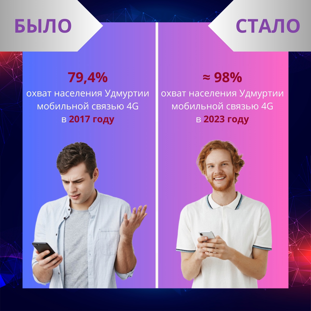 В Удмуртии на январь 2024 года мобильная связь 4G доступна примерно 98% населения