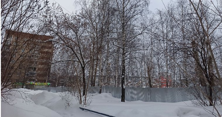 На месте зелёной зоны у дома №82 планируется возведение магазина. Ижевск.