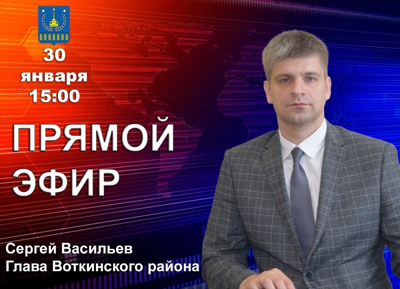 Уважаемые жители Воткинского района! 30 января в 15.00 будет проведен прямой эфир с Главой района Васильевым С.А.