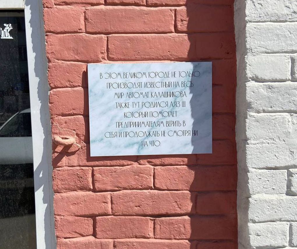 В середине мая 2024 года жители Ижевска поделились в соцсетях снимком — к стене купеческого дома на улице Горького, 70 прикреплена табличка с текстом: «В этом великом городе не только производят известный на весь мир автомат Калашникова. Также тут родился Аяз Ш который помогает предпринимателям верить в себя и продолжать не смотря ни на что» (авторские орфография и пунктуация сохранены — прим. ред. ).