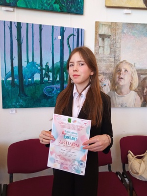 В декабре 2023-го года Анна приняла участие во Всероссийском изобразительном диктанте и стала победителем регионального этапа. Среди более трёх тысяч участников из разных регионов нашей страны жюри выбрало победителей, которые отмечены путевкой в «Артек»!