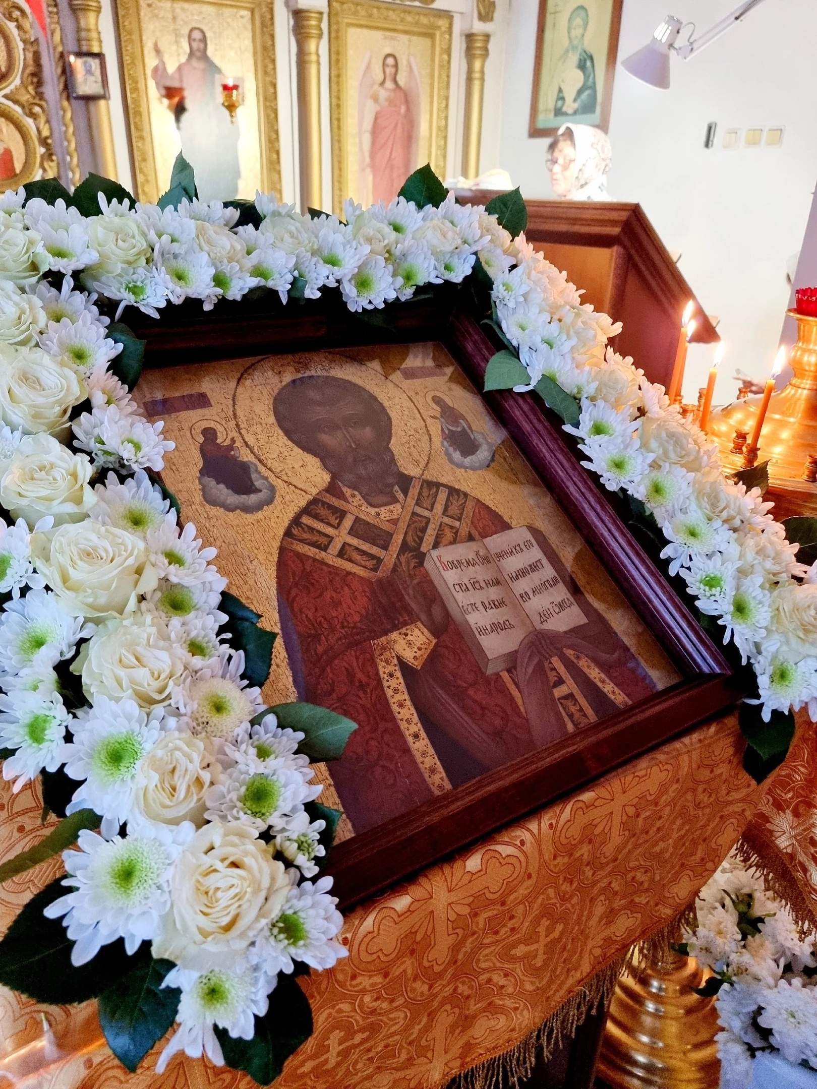 После службы священник разъяснил прихожанам смысл отрывка из Евангелия, поздравил верующих с праздником и рассказал о жизни и духовных подвигах Святителя Николая.