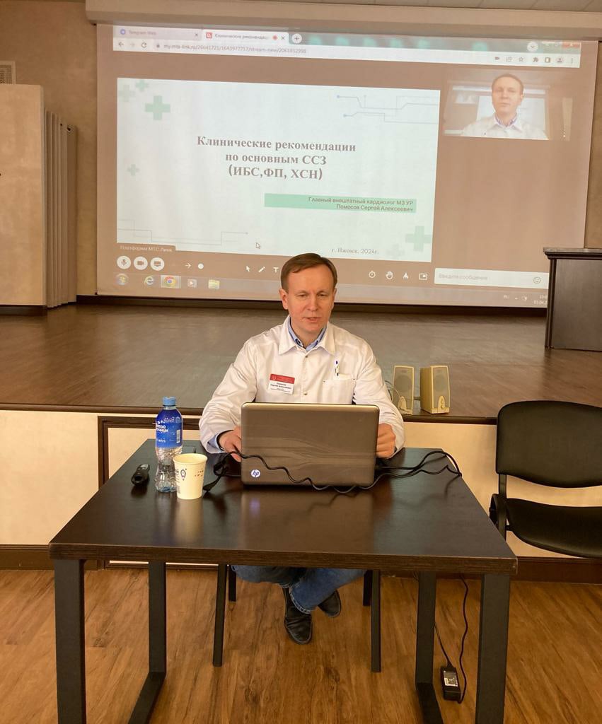 3 апреля 2024 года в конференц-зале РКДЦ главный внештатный кардиолог МЗ УР Помосов С. А. провёл семининар для врачей-терапевтов "Клинические рекомендации по основным сердечно-сосудистым заболеваниям".